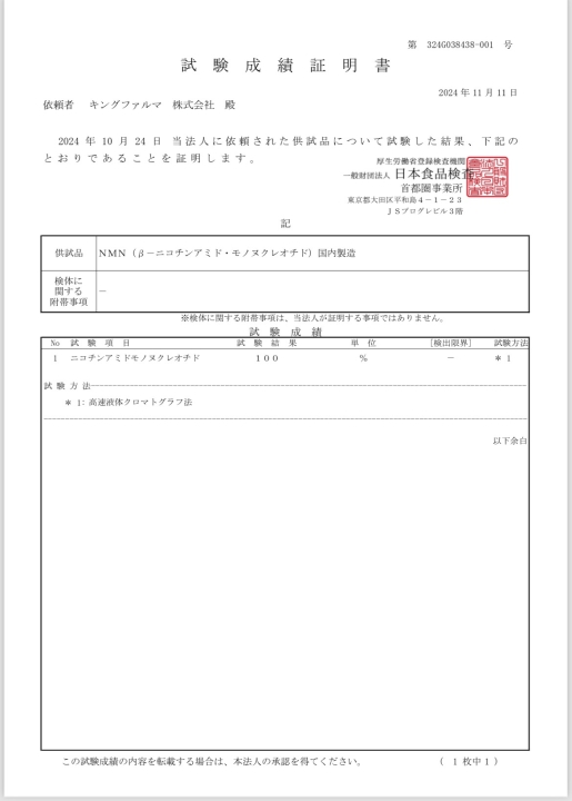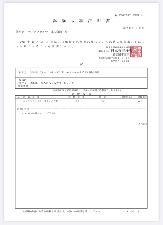 キングファルマは、常にNMNを分析し、家族と患者さんのためにNMNサプリメントを作ってきました。